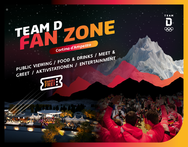 Auf dem Gelände vor dem Deutschen Haus mit Holzhütten, Bars und kulinarischen Angeboten wie Glühwein, deutschen Klassikern oder regionalen Spezialitäten können täglich bis zu 500 nationale und internationale Besucher*innen die Spiele hautnah miterleben – bei freiem Eintritt. Auf einer großen LED-Wand werden die Wettkämpfe live übertragen und Mitmach-Stationen wie Eishockey, Eisstockschießen und Biathlonsorgen für Olympia-Feeling nahe am Sport. Ein eigener Shuttletransfer verbindet den Ort im Tal mit dem Gelände des Deutschen Hauses auf dem Berg und macht die Fan Zone zu einem zentralen Anlaufpunkt für alle, die Team Deutschland feiern und unterstützen möchten.
