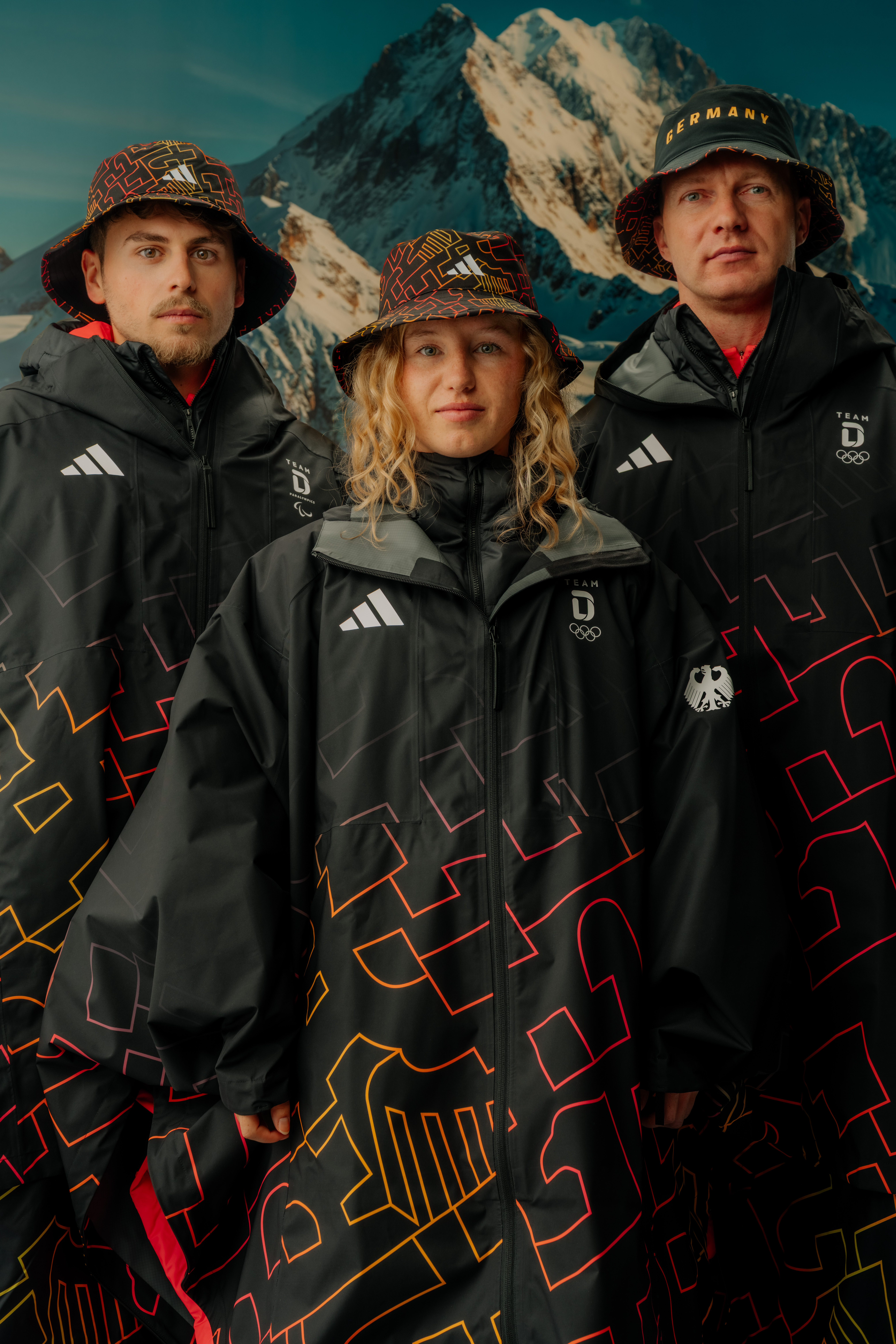 Die neue Team D Kollektion basiert auf der adidas TERREX-Produktlinie und wurde mit modernen Materialien und Technologien für die besonderen Anforderungen des Wintersports entwickelt. Ziel war es, allen Athlet*innen, Trainer*innen und Betreuer*innen optimale Bedingungen zu bieten – unabhängig von Disziplin, Körperform oder Einsatzbereich.So tragen beispielsweise alle Teammitglieder bei der Eröffnungsfeier visuell identische Outfits als Zeichen der Einheit, während zugleich eine erweiterte Auswahl an Größen und Passformen zur Verfügung steht. Ein zentrales Element der Kleidung für die Opening-Ceremony ist etwa die wasserdichte und atmungsaktiv Xperior Hybrid Primeknit CLIMAPROOF+ Jacke. Das Material, entwickelt auf Basis von Body-Mapping-Technologie, bietet hohe Dehnbarkeit, Robustheit und Schutz bei winterlichen Bedingungen – und damit maximale Bewegungsfreiheit auf und abseits der Wettkampfstätten. Ergänzt wird die Kollektion durch funktionale Accessoires wie Brillen, Schlauchschals und Halswärmer, die sowohl praktische als auch stilistische Akzente setzen.